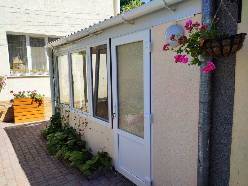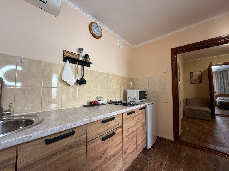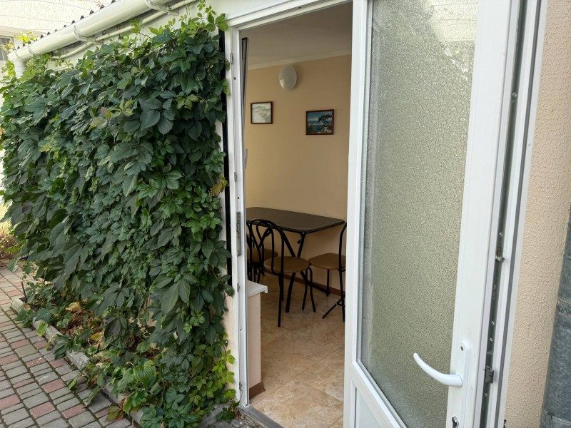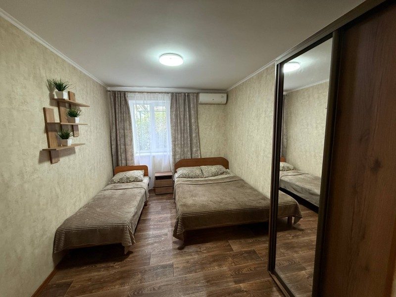 В доме две комнаты, кухня, санузел, веранда. Холодильник, телевизор, кондиционер, стиральная машина, микроволновка, фен, утюг, Wi-Fi, холодная и горячая вода постоянно, мангал. Ухоженный двор, утопающий в зелени винограда, деревьев граната и множества цветов.